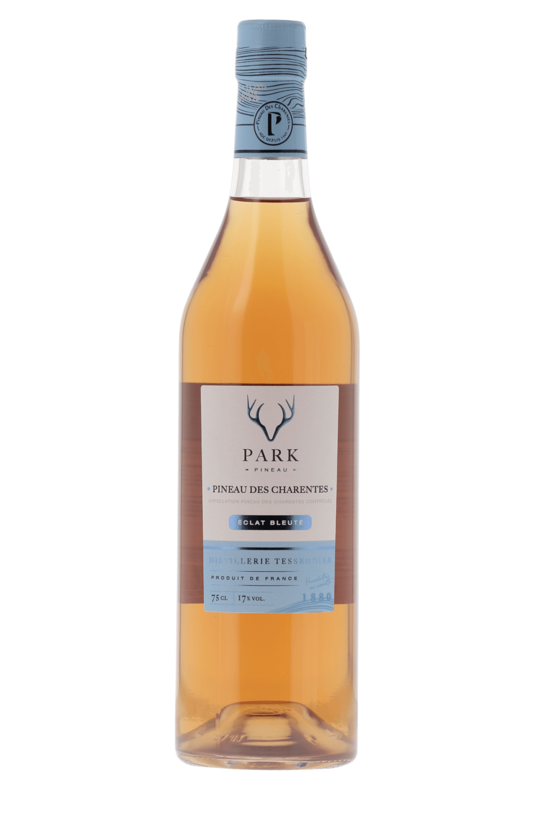 Le Pineau des Charentes Park "Éclat Bleuté" est bien plus qu’un apéritif : c’est une invitation à la douceur. Né d’un assemblage passionné entre jus de raisin frais et eaux-de-vie de Cognac soigneusement sélectionnées, ce Pineau blanc incarne l’art de vivre à la française, entre tradition charentaise et touche moderne.